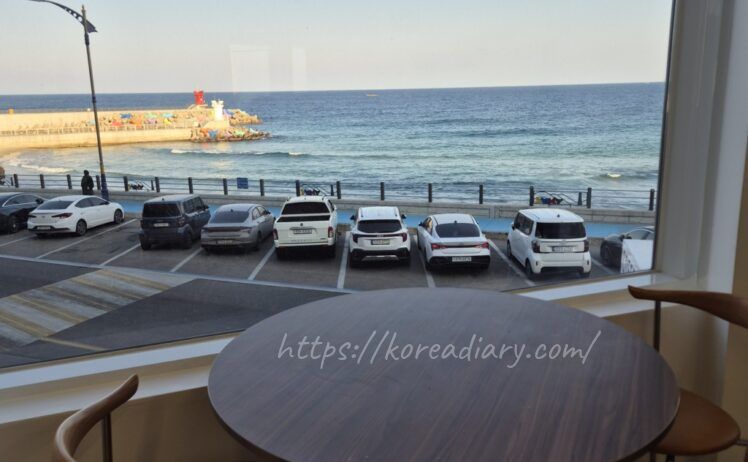 トンヘの海岸沿いにも景色の良いカフェが沢山あります。海岸にウミネコ?たくさん。可愛いなぁ。潰れているカフェも沢山あった。やっぱりカフェの競争激しそうだなぁ。外は寒いし、ハンギョルというお洒落カフェに入ってまったりすることに。このあたりは海沿...