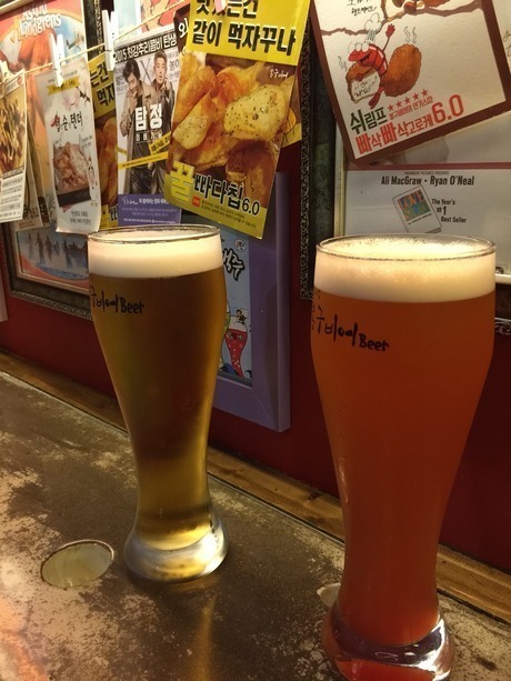 スッキリとした美味しさで、味の薄い韓国のビールの味が気になりません;P
