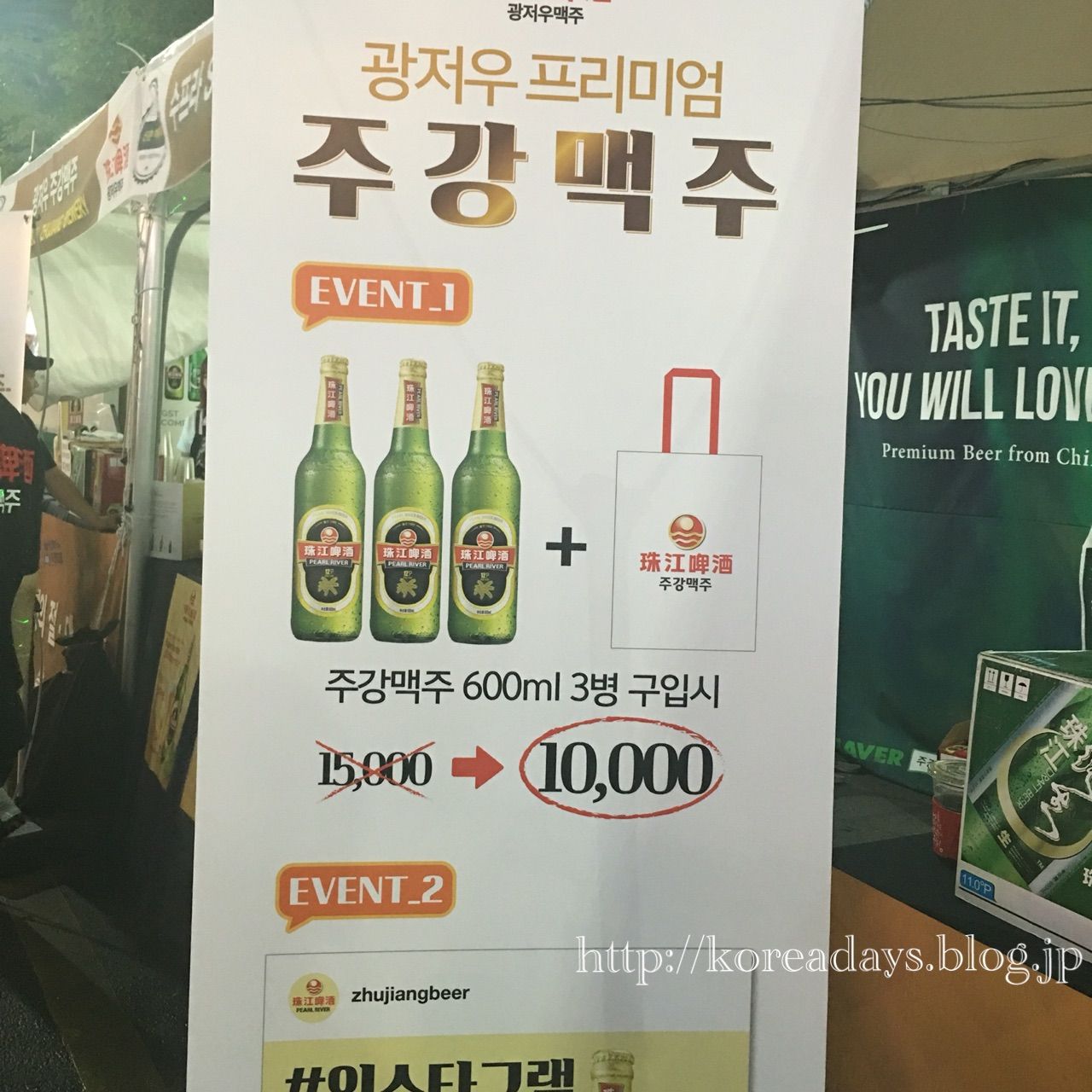 ビールは2本で3,000ウォンでした。
