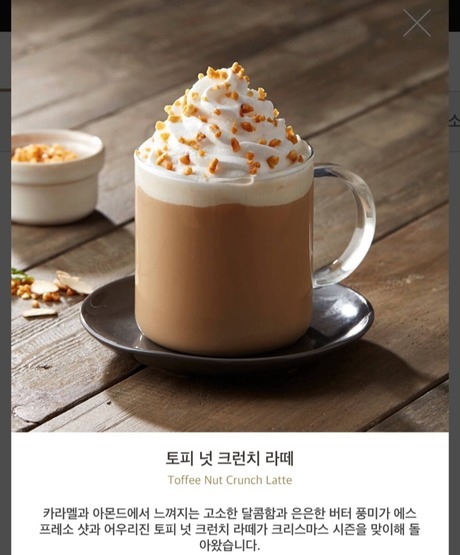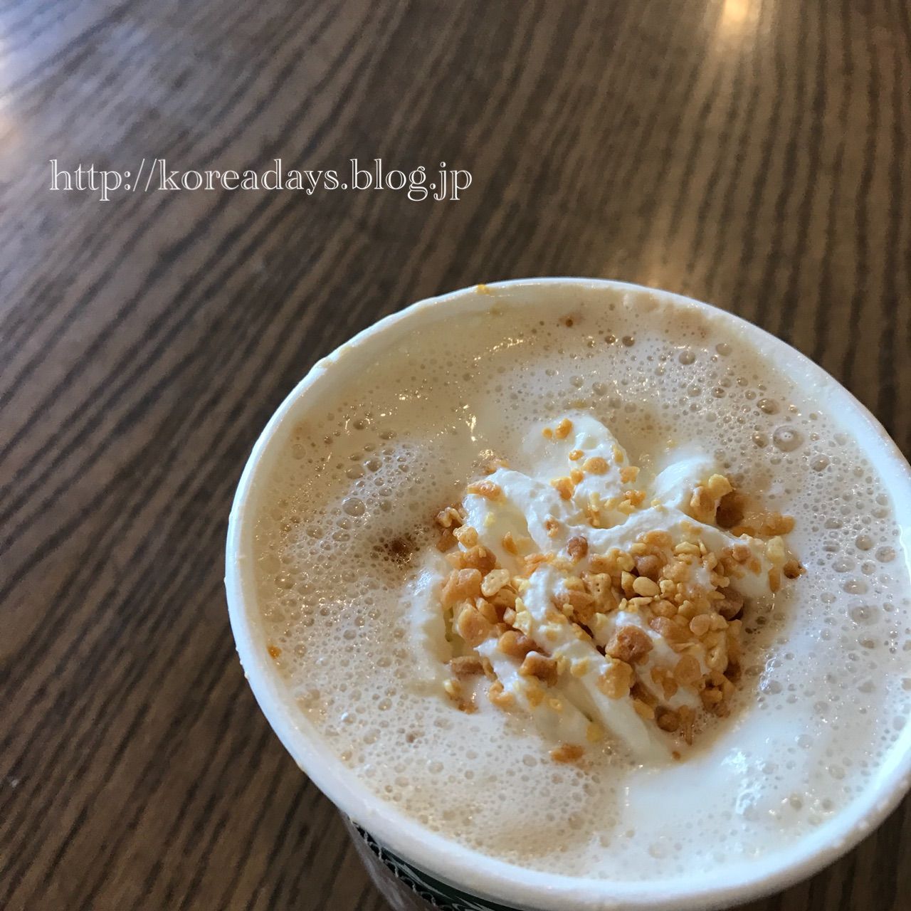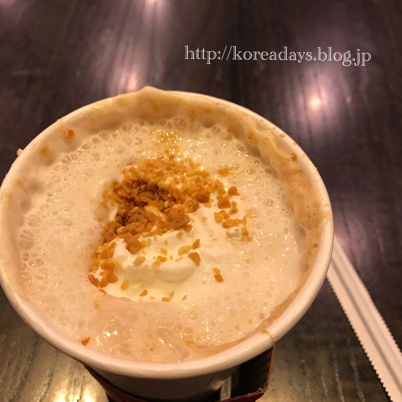 韓国スタバのクリスマスプロモーションドリンクの一つ、トフィーナッツクランチラテを飲んでみました。