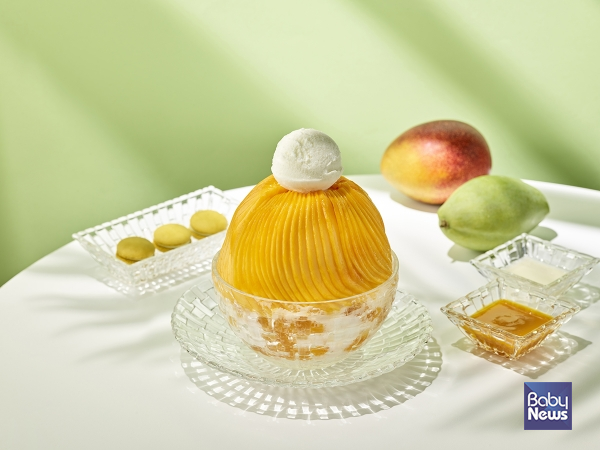 一緒に出てきたのは練乳、マンゴーソースとマンゴーのマカロン。