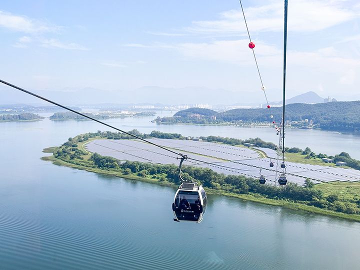 スタバ横のケーブルカー乗り場から搭乗して、衣岩湖(ウィアムホ)や島の上を通過しながら、三岳山(サマクサン)の中腹まで行くことが出来ます。