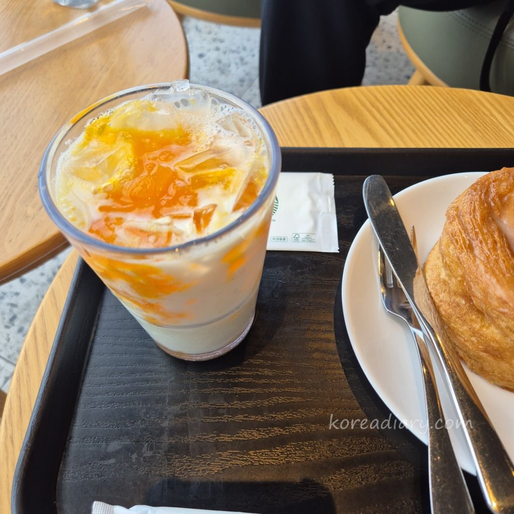 注文したのはモンブランデニッシュとマンゴーラテ。