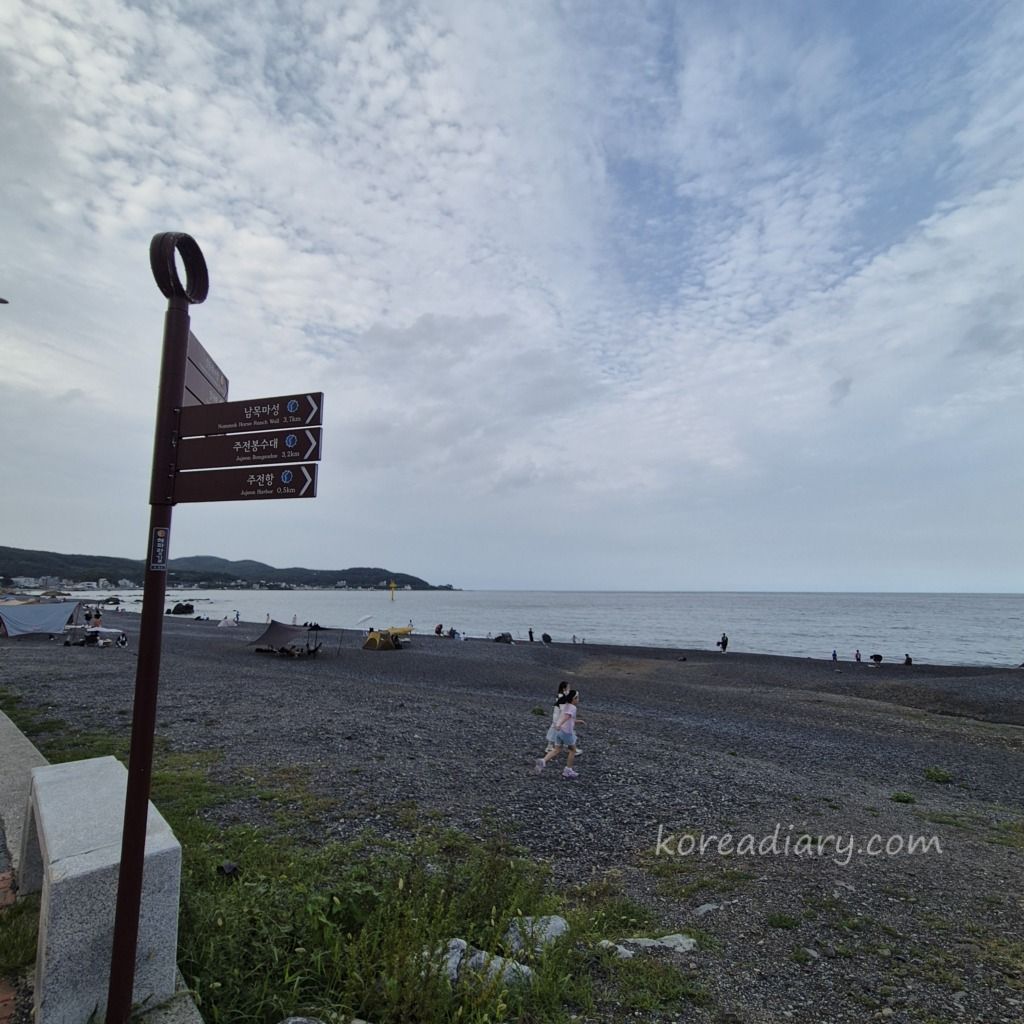 週末だから海岸にテントを立てて遊んでいる家族連れ多かった。