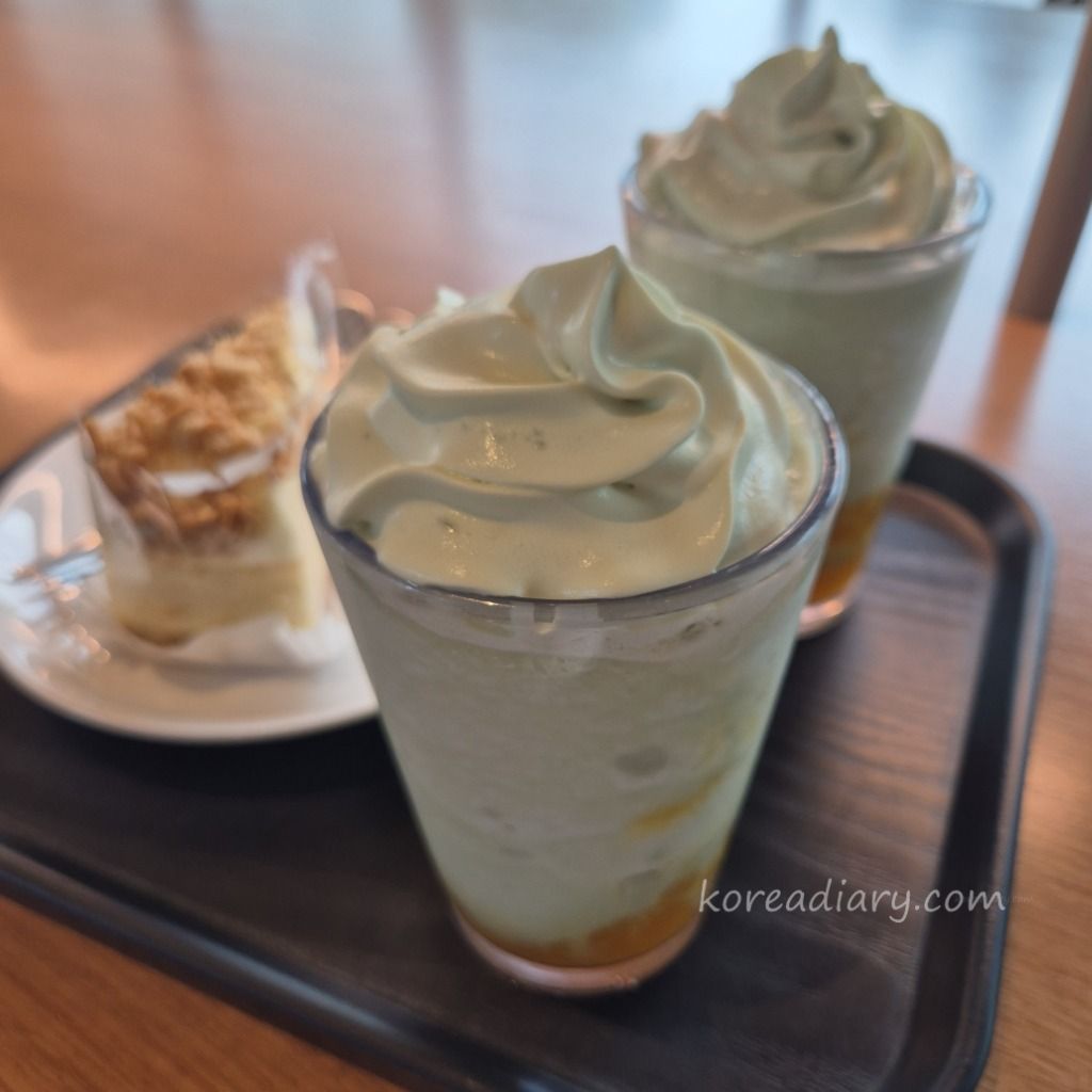 一時は売り切れだったメロンフラペチーノととうもろこしのチーズケーキ。