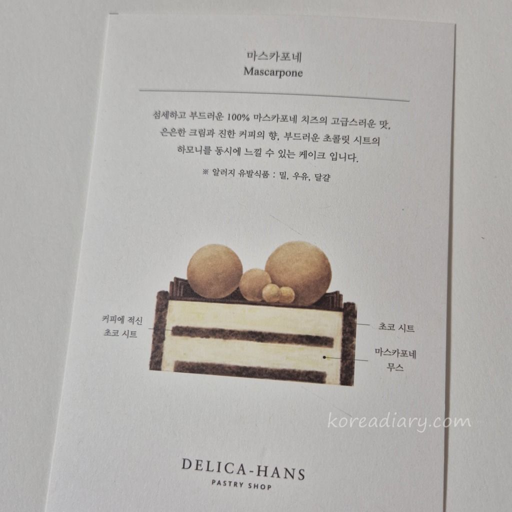 韓国でティラミスを買っても、普通のクリームチーズだけを使っているような味のものが多いけど、こちらは確かにマスカルポーネの風味がしました。