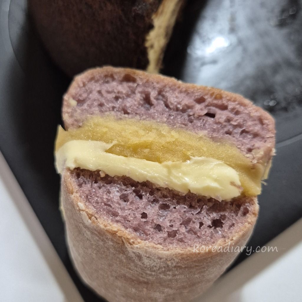 コグマ(さつまいも)と白あんかを混ぜたペーストがバターとともに挟んであるパンです。