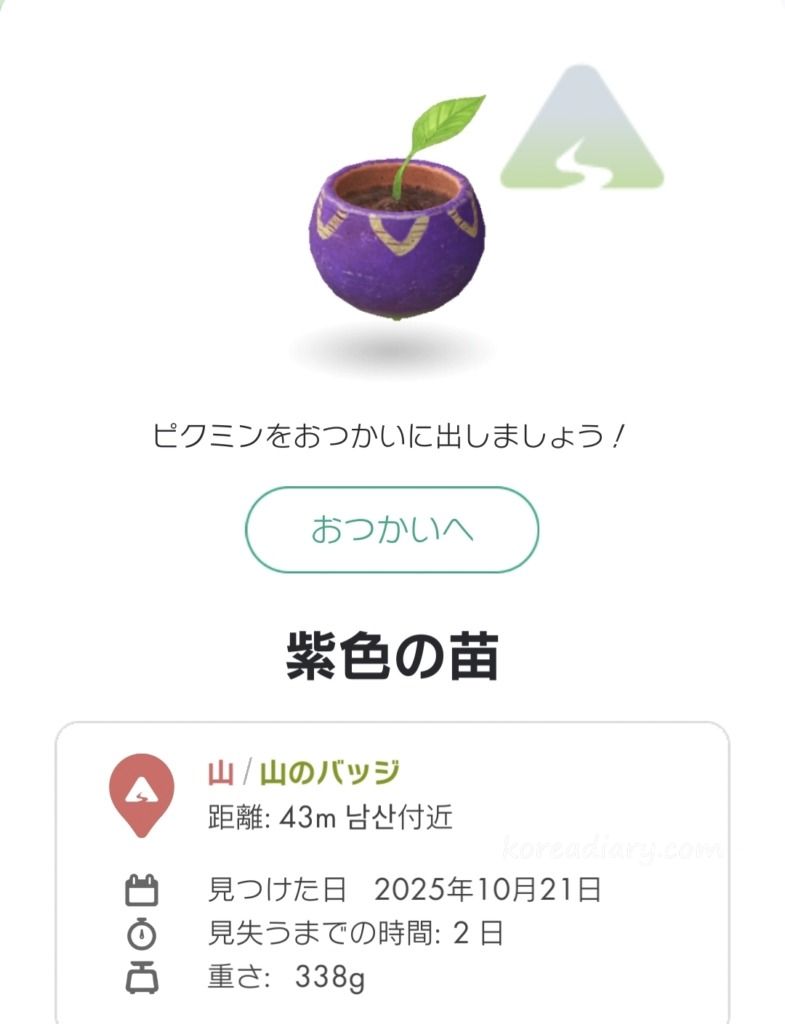 韓国語のピクミン情報を検索して山デコピクミンスポットを探したら、南山図書館から南山に登ったら、2種類の山デコピクミンが取れるとのこと。