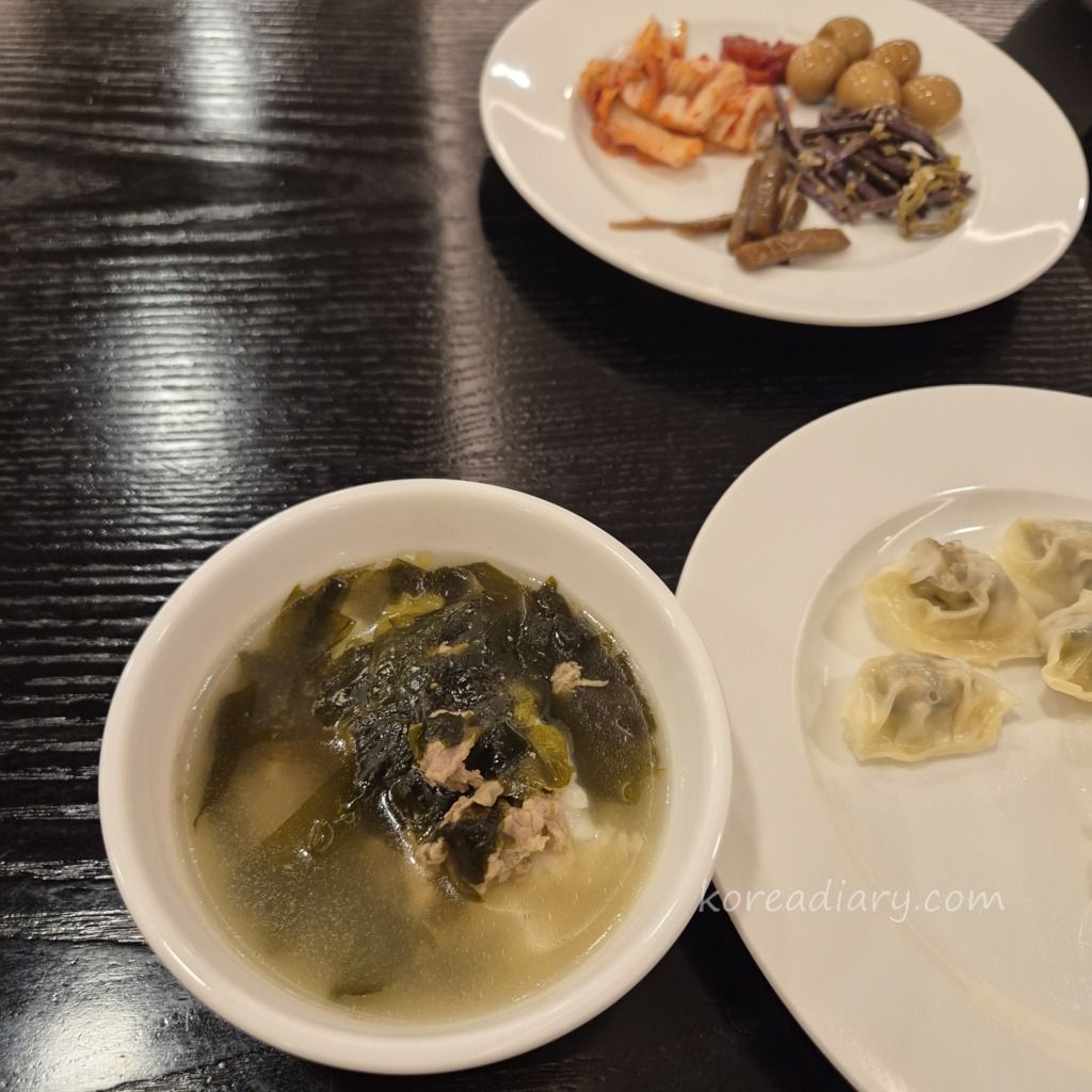 わかめスープに水餃子、スクランブルエッグなど。