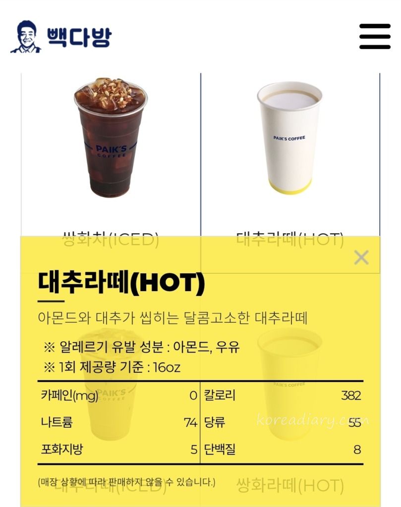 ペクタバンでテチュ(なつめ)のラテがあったので注文してみました。