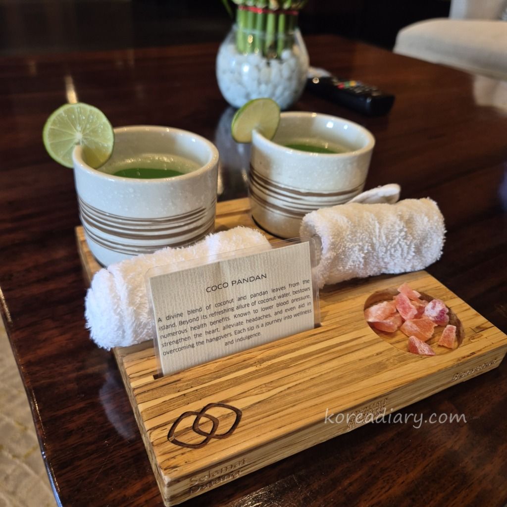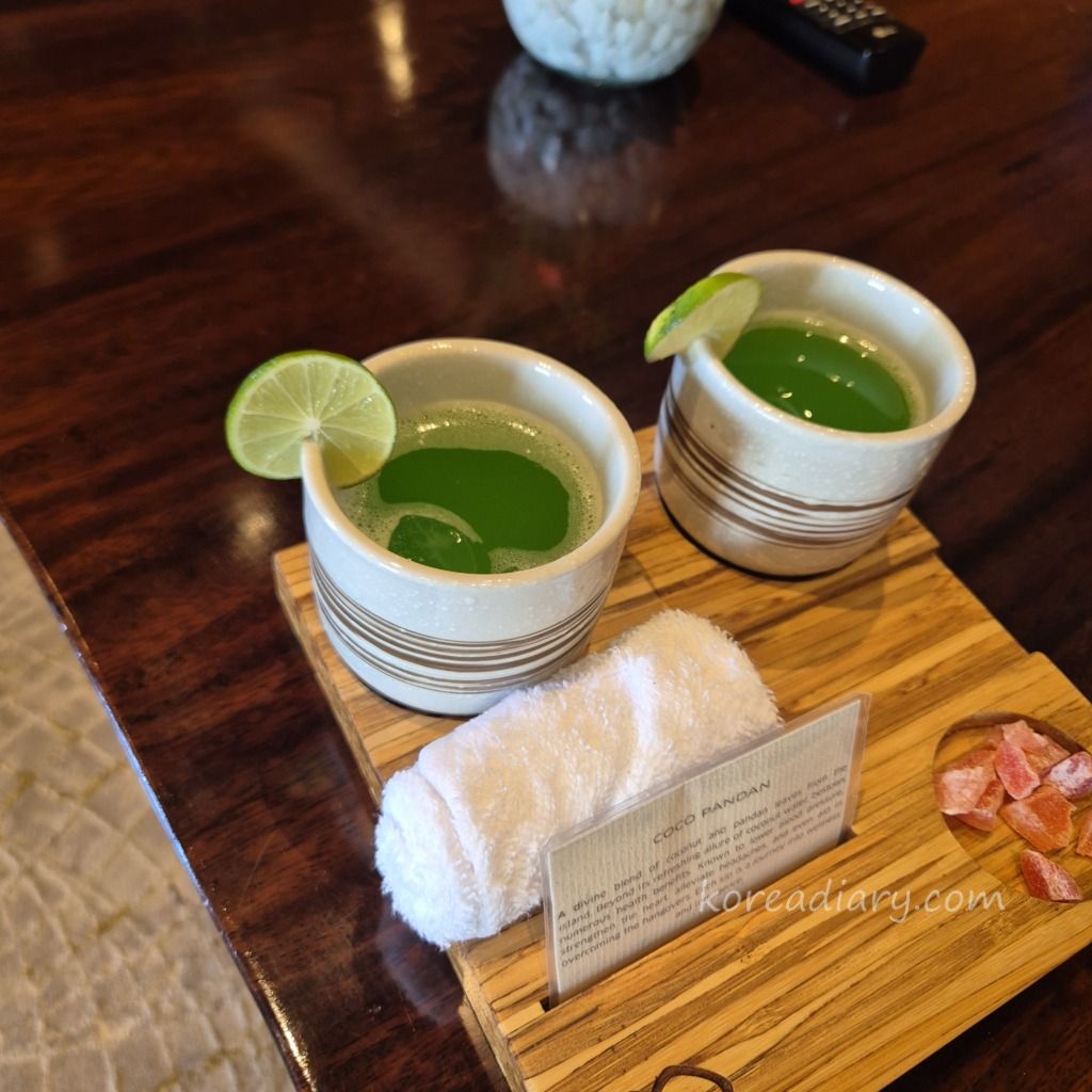 パンダンのドリンクとおしぼりで歓迎してくださいました。