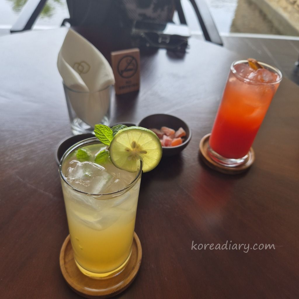 でもやっぱり暑いから屋内へ退散してウェルカムドリンクを頂きました:)