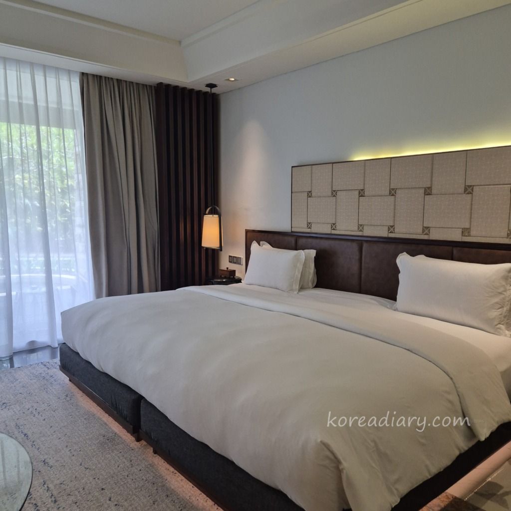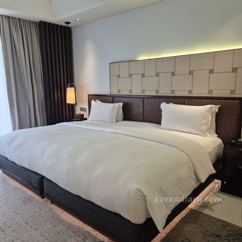 ダブル2つくっつけたような特大サイズのベッドで、めちゃ広くてよかった。