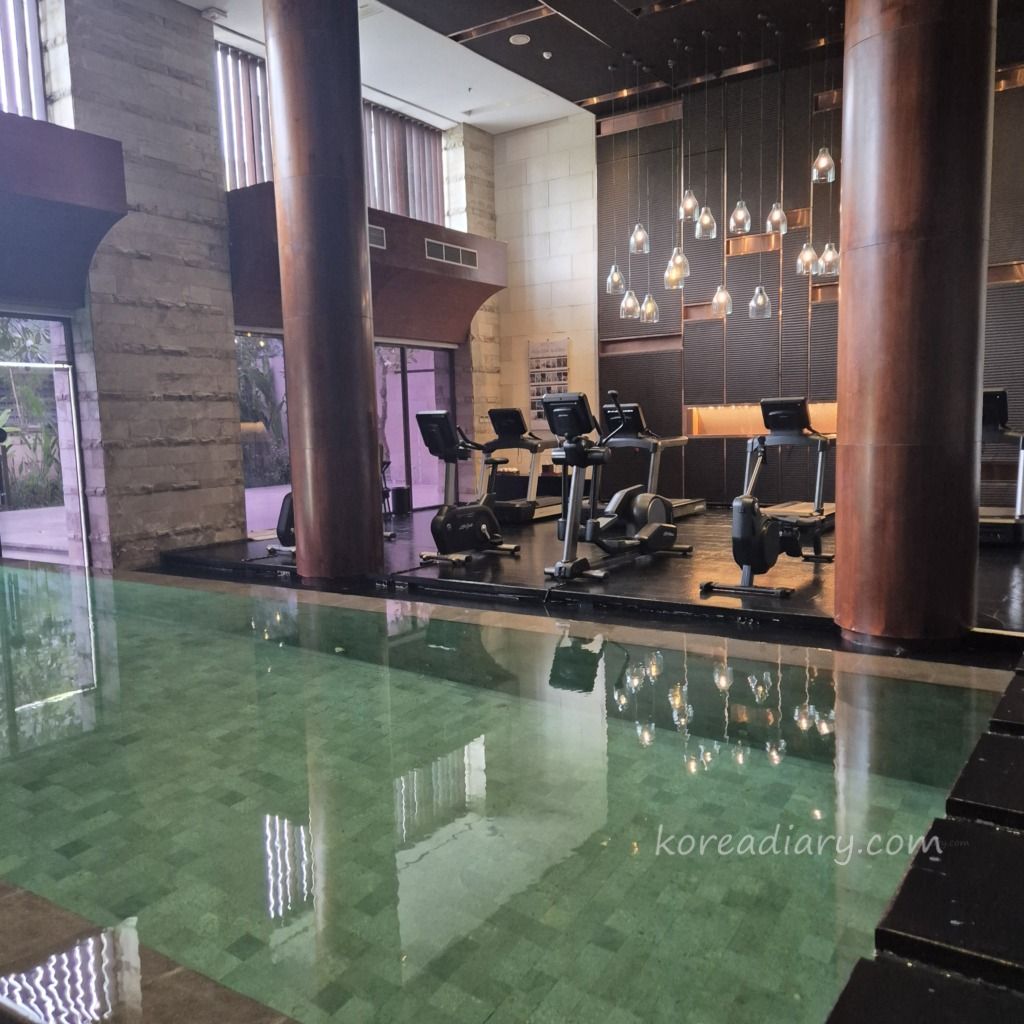 ソフィテルバリ ヌサドゥアビーチリゾートのジムは、ダンベルとかのある筋トレゾーンとトレッドミルなどがあるゾーンに分かれていました。