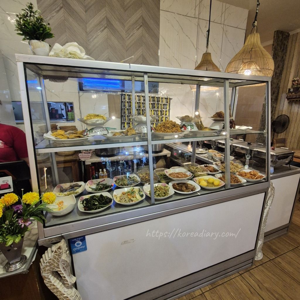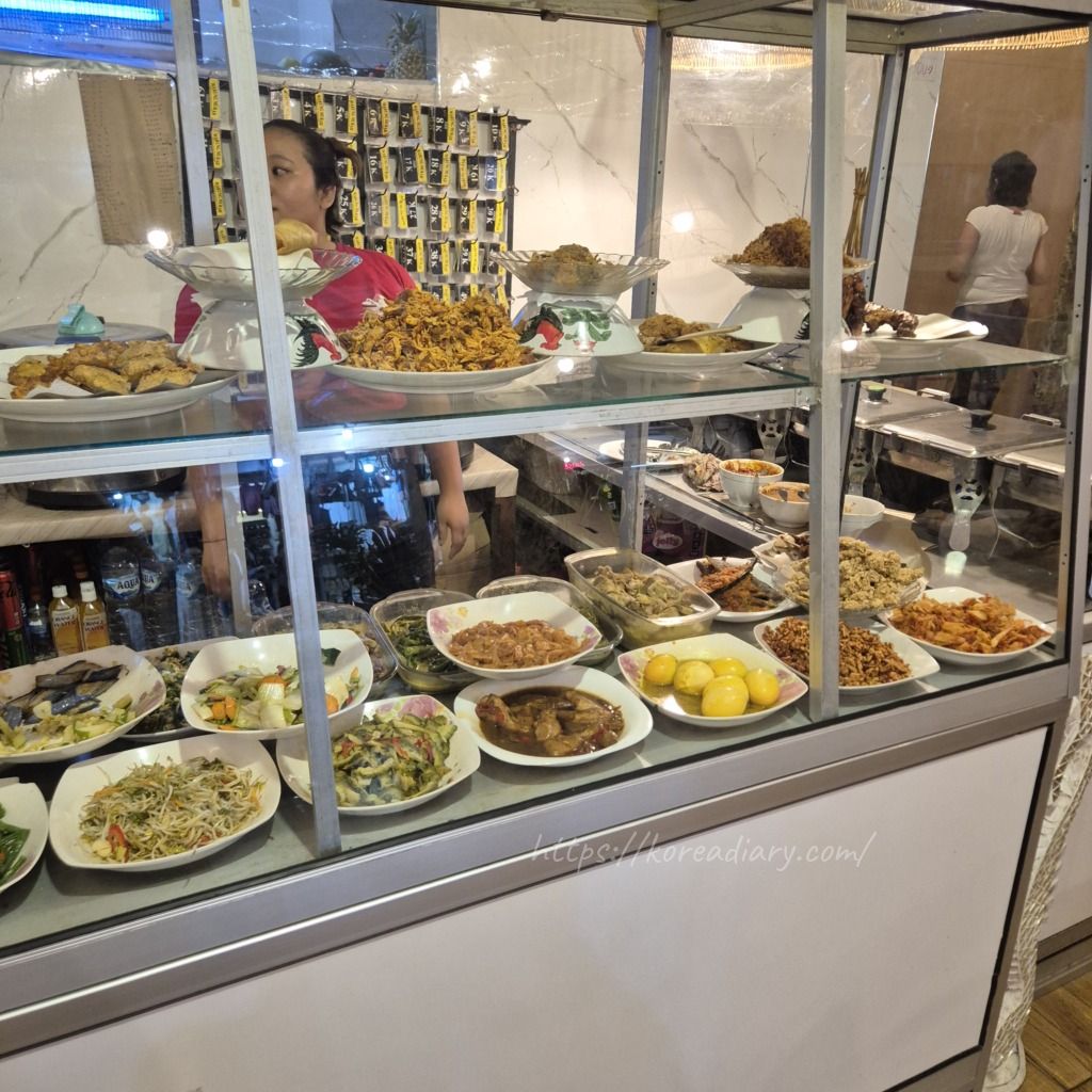 沢山のおかずのメニューからナシチャンプルを作ってもらっても良し、メニューの中にある食事を選んでも良し。