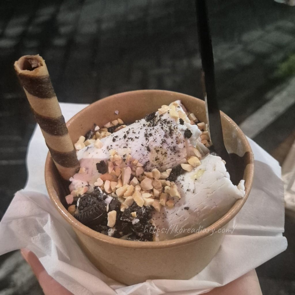 器用にローリングされたアイスクリーム、とても美味しかったです。