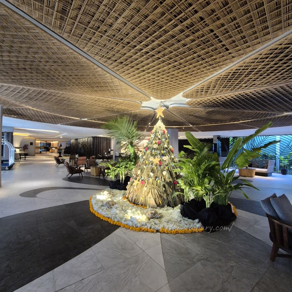 チェックインした昼間は気づかなかったけど、ホテルのフロントにはツリーが飾ってあった。