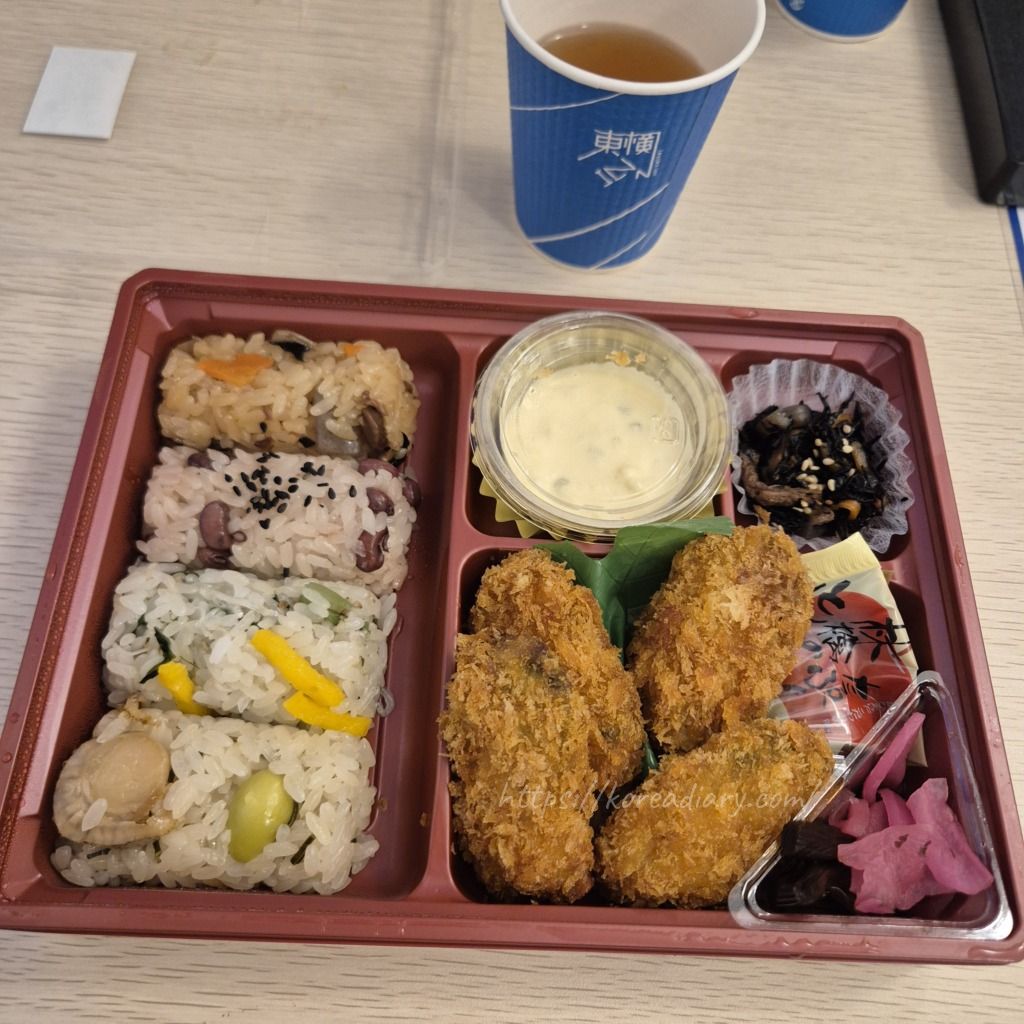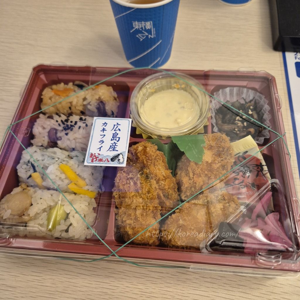 飛行機に乗って疲れていたので、駅の構内で美味しそうなお弁当を買って行きました。