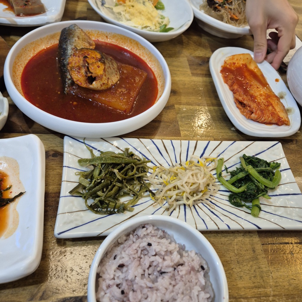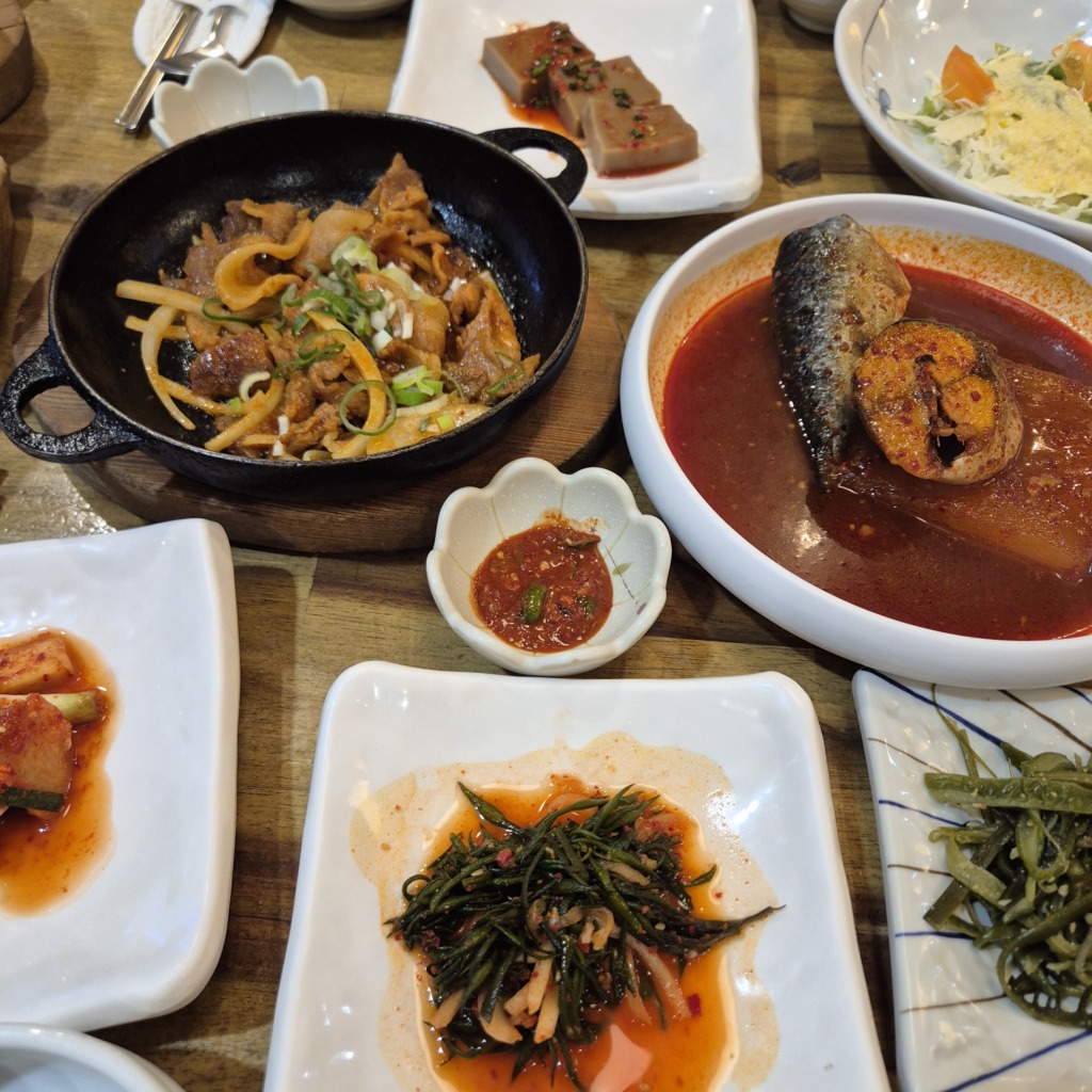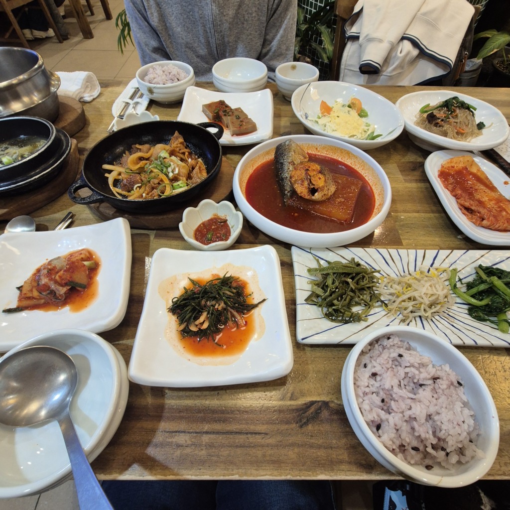 メインのおかずはサバの煮つけ(コドゥンオジョリム)と豚肉の炒め物(チェユクポックム)出ました。