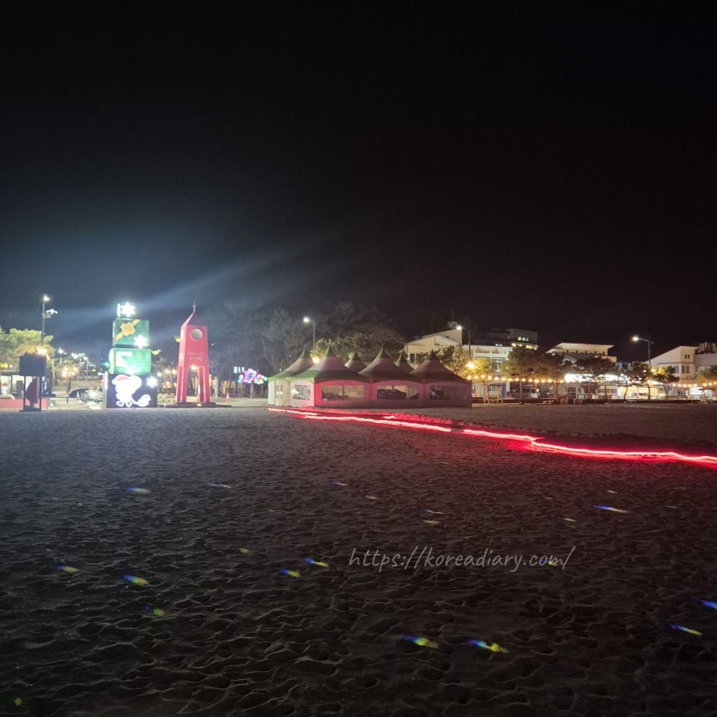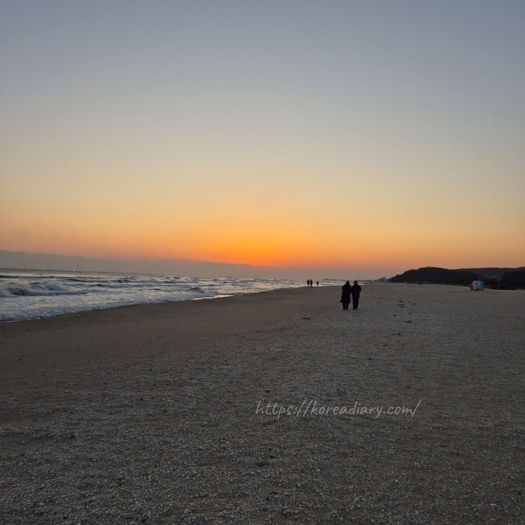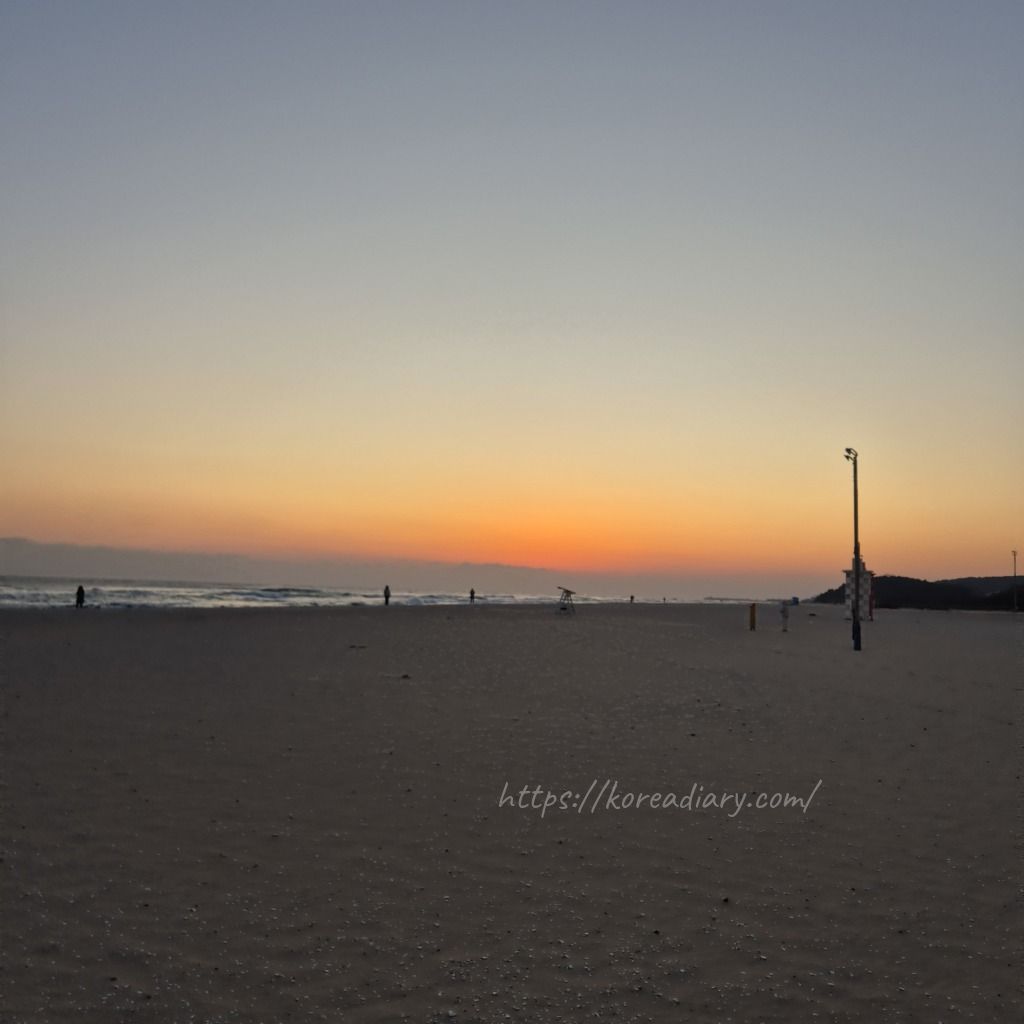 夜、ホテル近くのマンサン海岸へ。