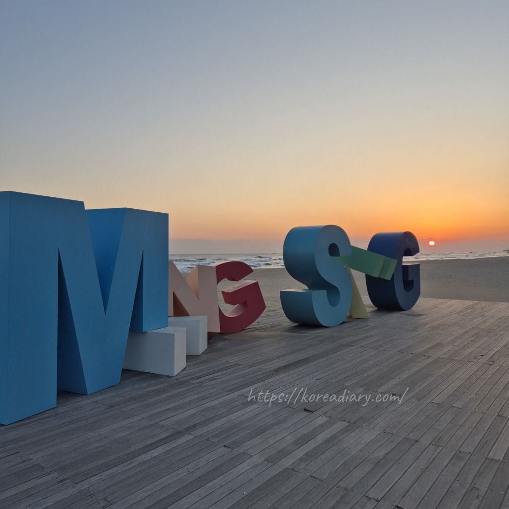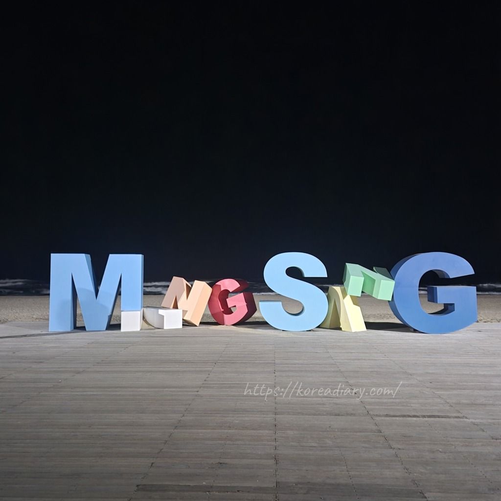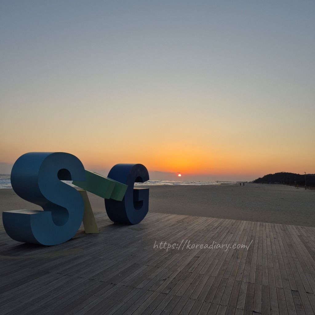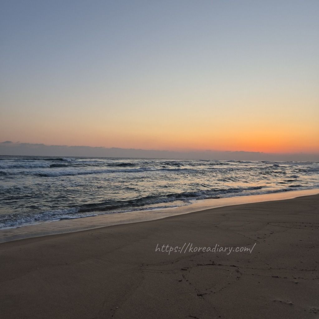 夜、ホテル近くのマンサン海岸へ。