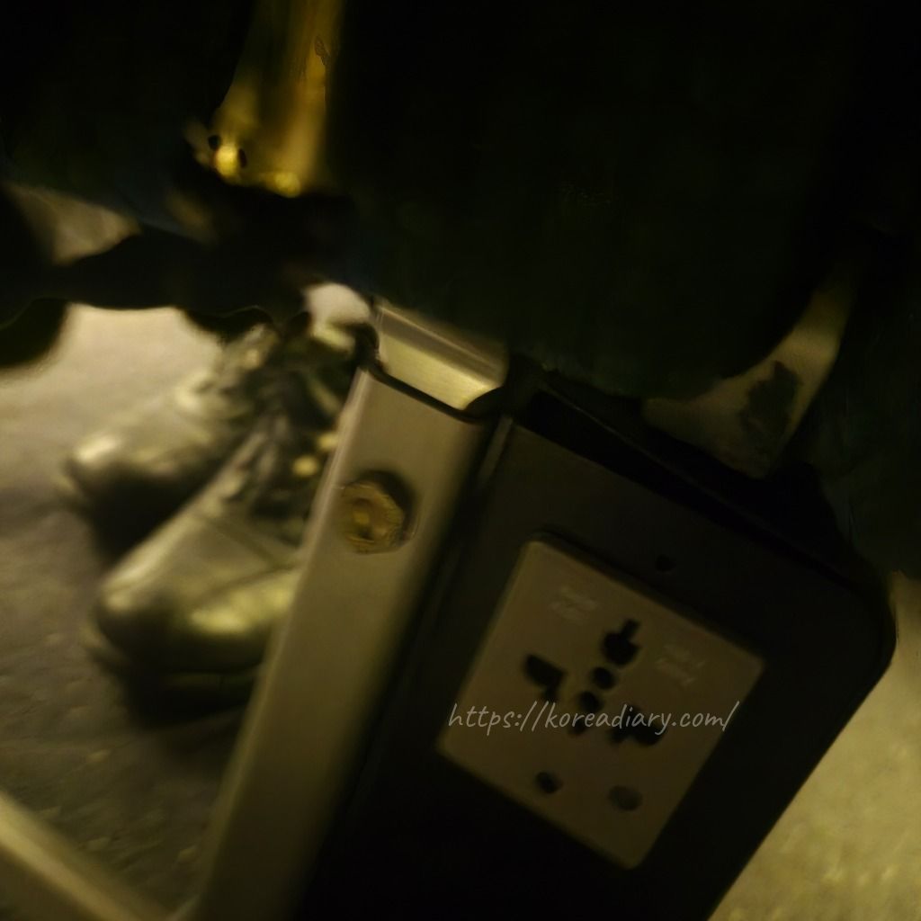 座席の下に電源を見つけたけど、離陸してからも使えなかった・・残念。
