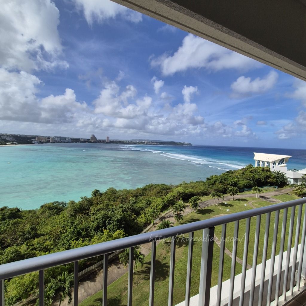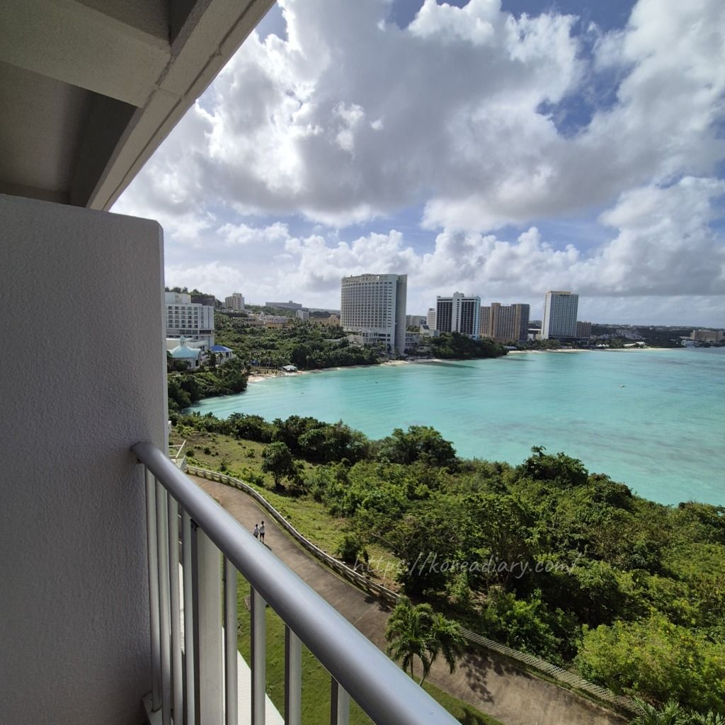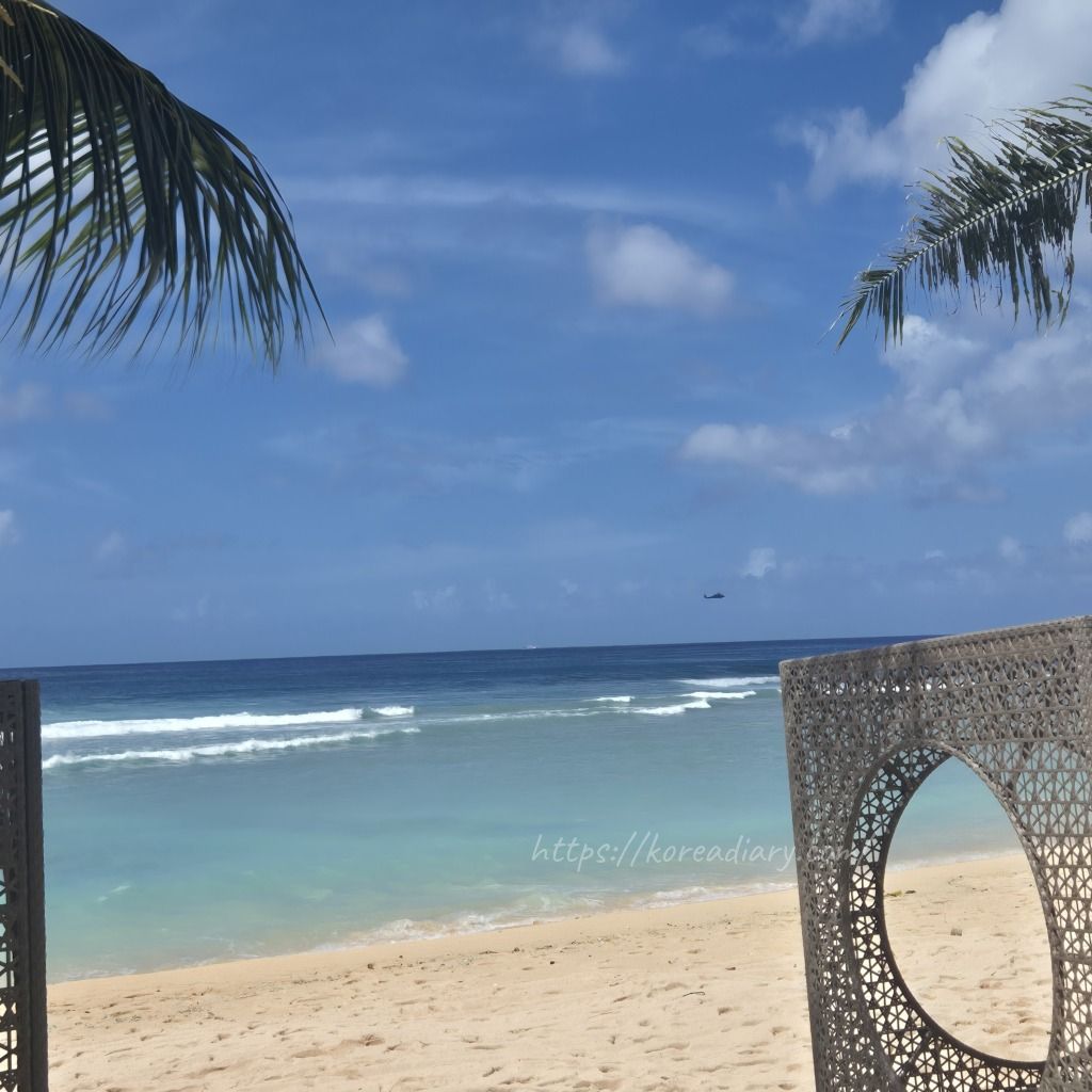遠浅のタモンビーチのビュー。
