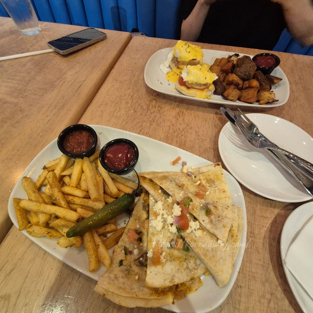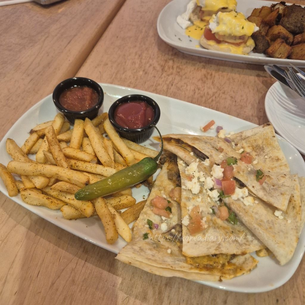 夫はエッグベネディクト、私はケサディア。