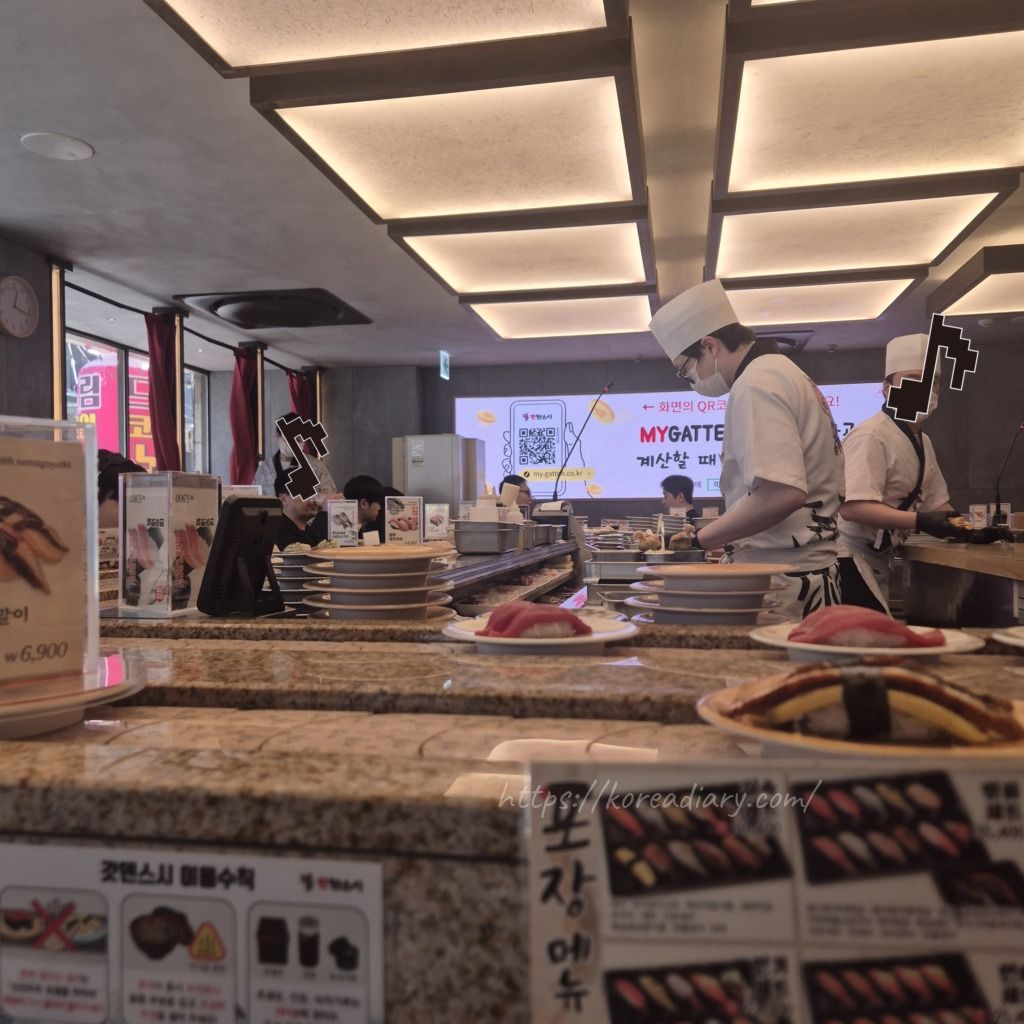 鐘路のがってん寿司も人気でいつも満席で待たないといけないけど、ソルラルだったからお昼時でもすぐに着席できて席に余裕がありました。
