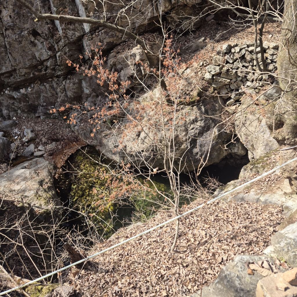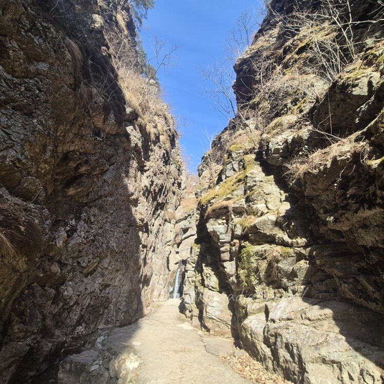 両側が崖になっていて、上流の滝からの小川が流れています。