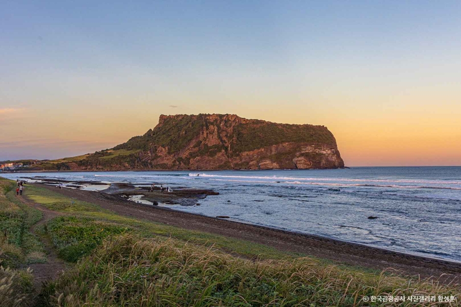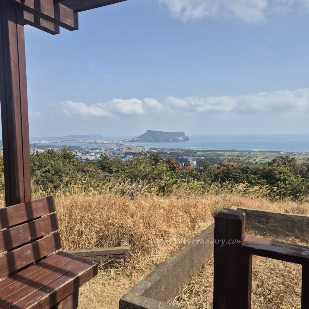 頂上から見える城山日出峰(ソンサンイルチュルボン)。