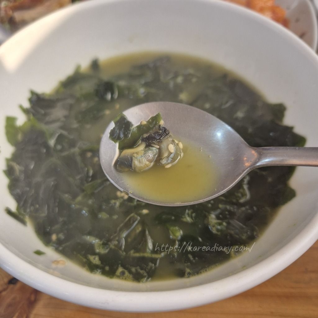 ポマルという貝が入ったわかめスープを頼んでみました。