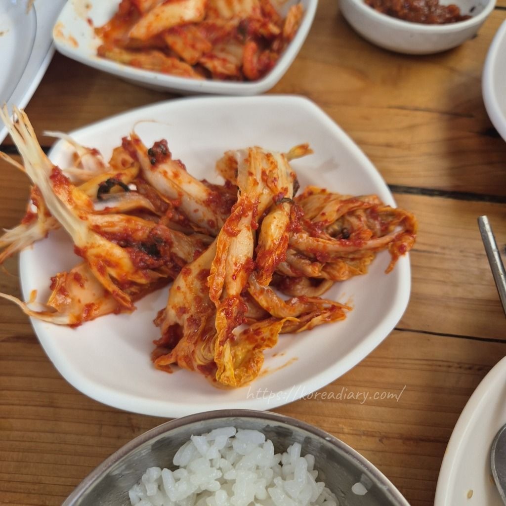 丁度、お店の方々でキムチを漬ける作業をされていて、その作ったばかりのキムチもいただきました。