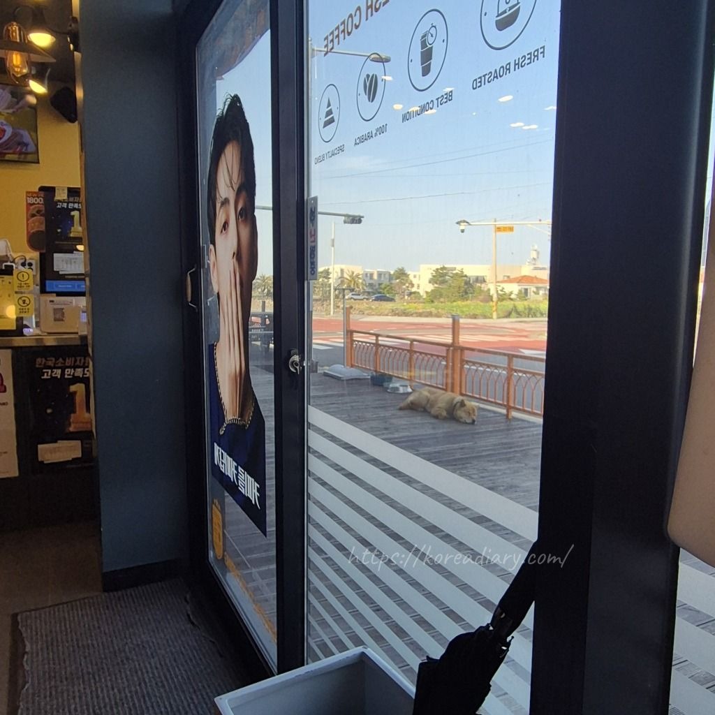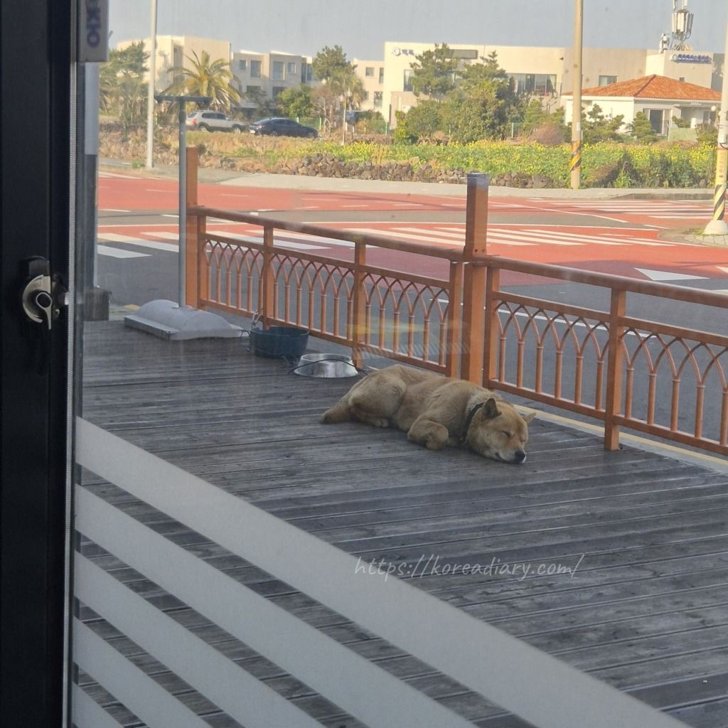 帰りにコーヒー会に行ったら、隣の店の可愛い看板犬が昼寝してた。