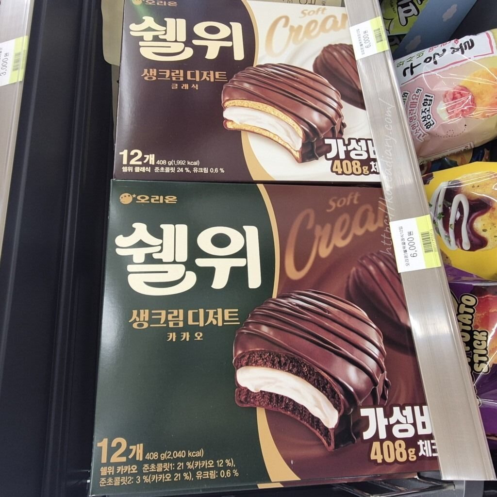 現地のハナロマートでロッテのモンシェルに見せかけたオリオン製菓の新しいシェルウィ発見。