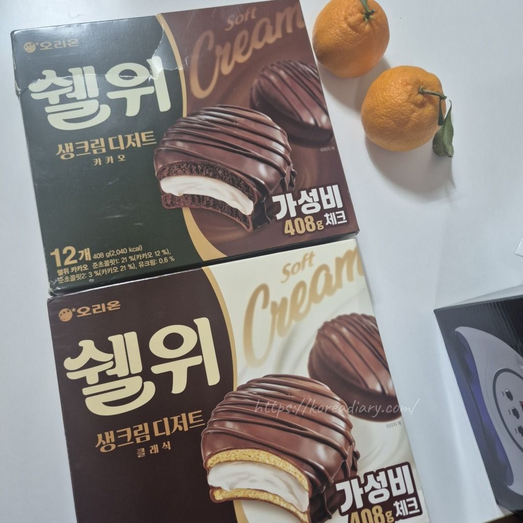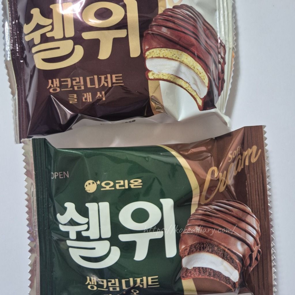 韓国のチョコパイ系のお菓子の中ではロッテのモンシェルが一番美味しいと思っているんだけど、最近見かけた見かけたオリオン製菓の新製品を見てたまげたね:)
