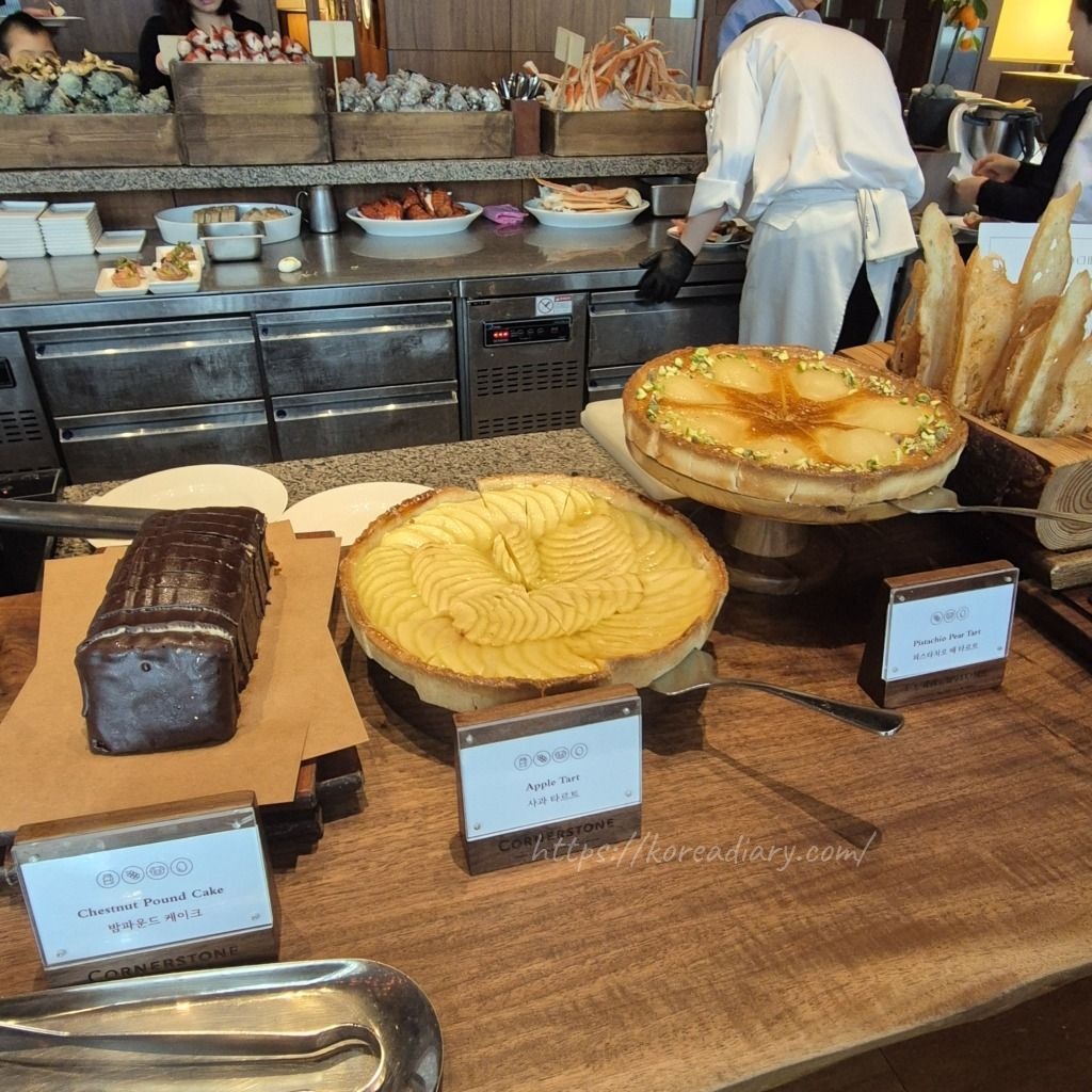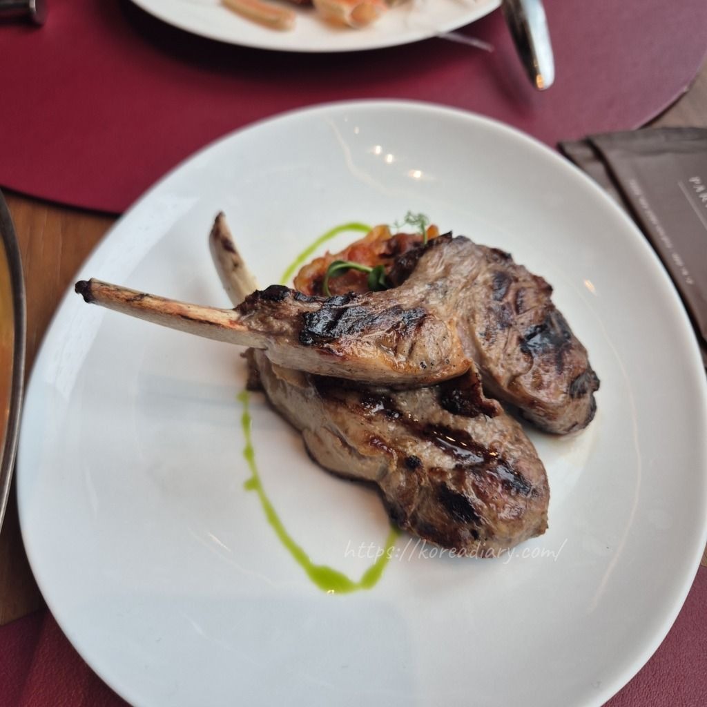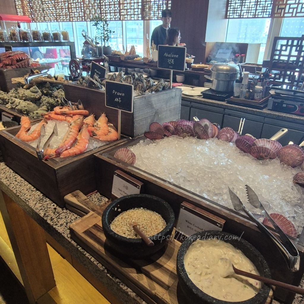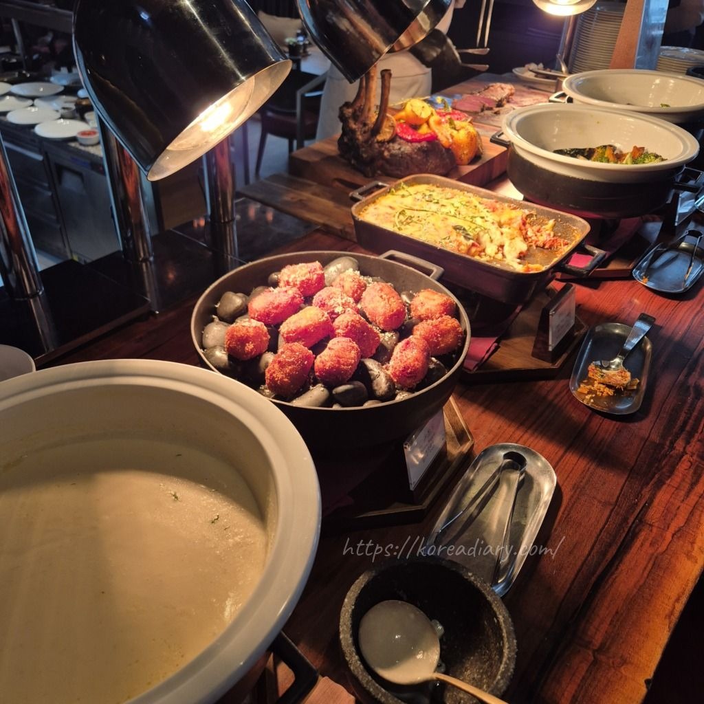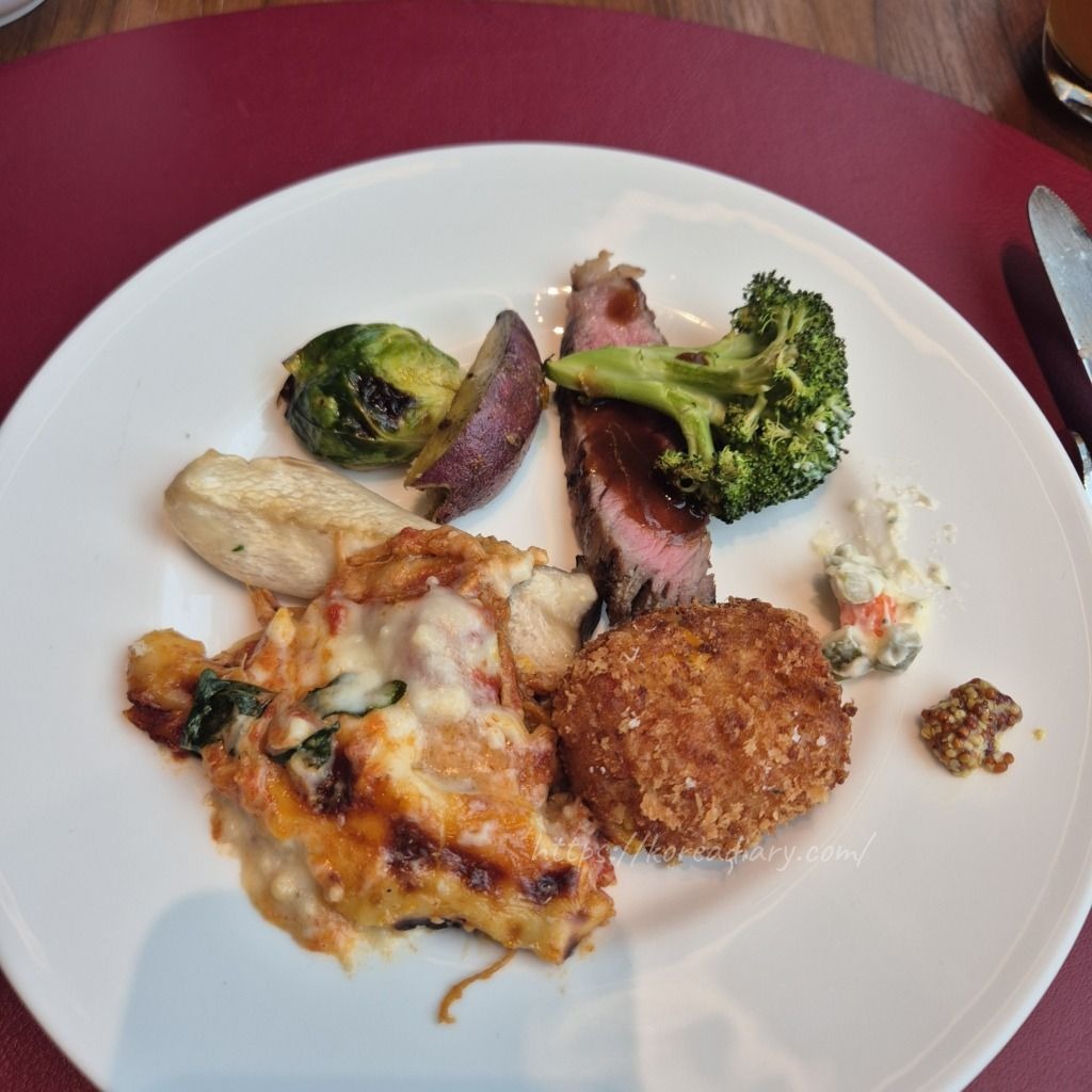 前菜やパン、デザートなどはビュッフェ形式で、後はテーブルでオーダーする方式。