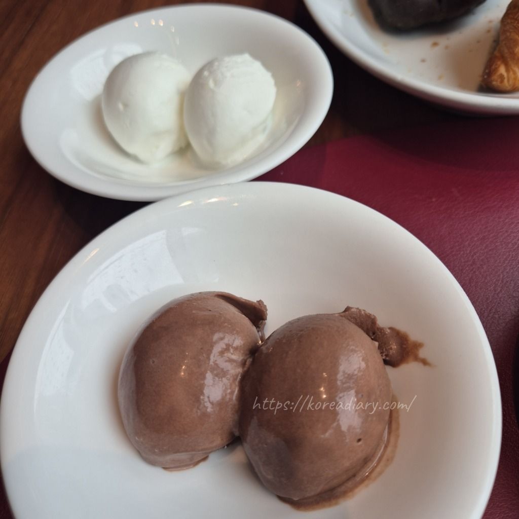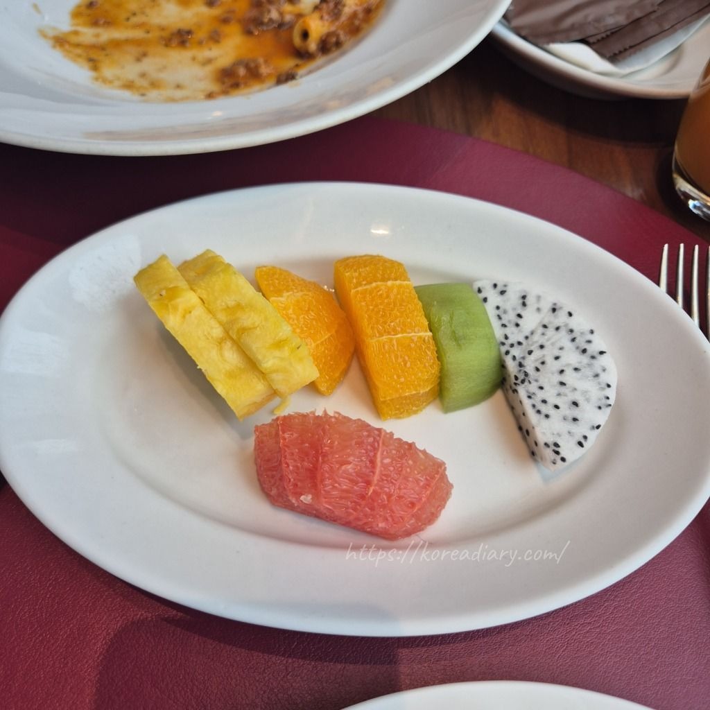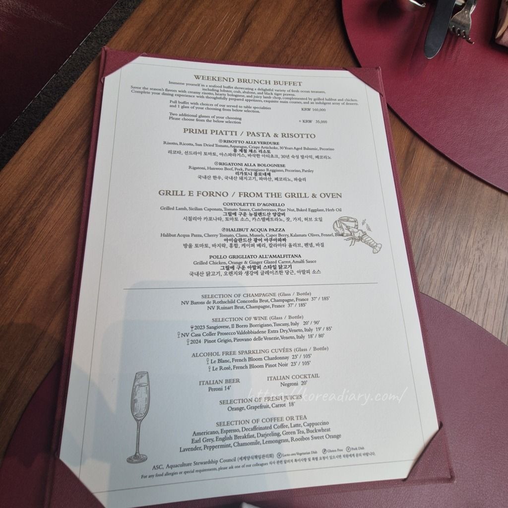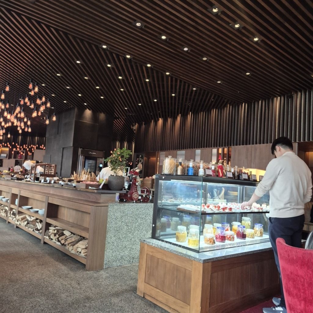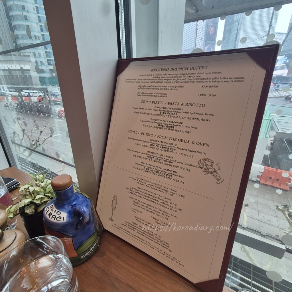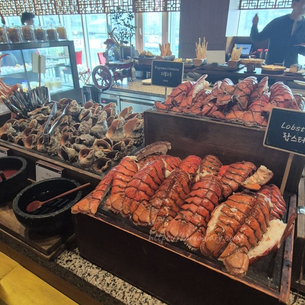 前菜やパン、デザートなどはビュッフェ形式で、後はテーブルでオーダーする方式。