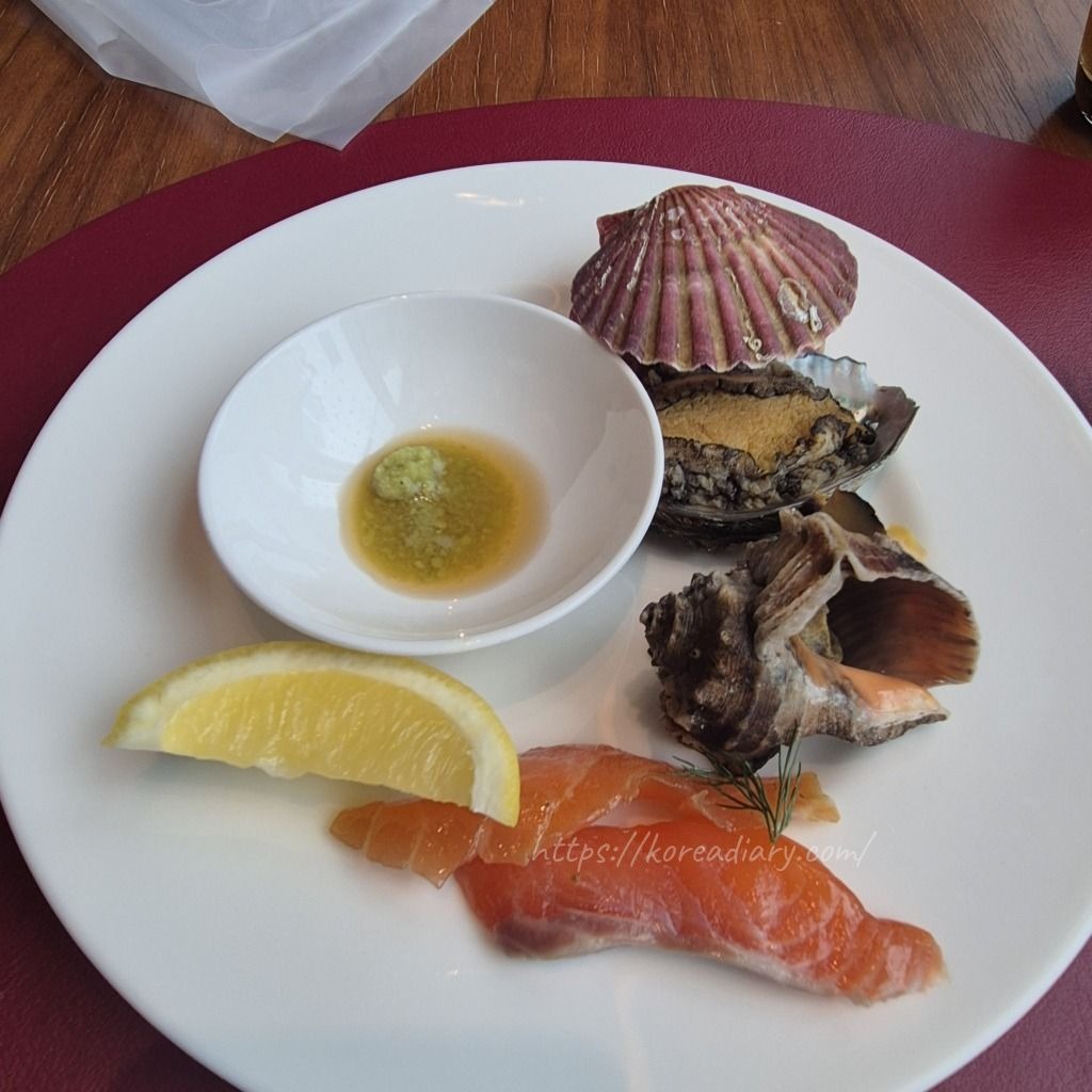 開始時間にやって来たはずだけど、海産物はみんなが取った後のこの状態だった:)