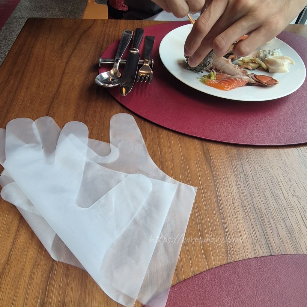 茹で蟹を食べるためにビニール手袋もあったけど、こんななめらかな高級そうなビニール手袋は初めて見た。