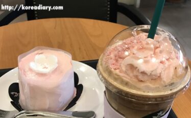 韓国スタバ 韓国スタバのさくらプロモーションでチェリーブロッサムラテと春の日ケーキ♪