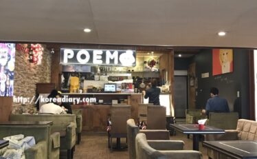 明洞で老舗的カフェのポエムに初めて行ってみました。コネストの記事はこちら→ POEMちょっとレトロな雰囲気。落ち着く感じです。私達が座った席の上の階にも席があるみたいでした。注文したのは、イチゴとコーヒーのシェイクみたいなドリンク。私はイチ...