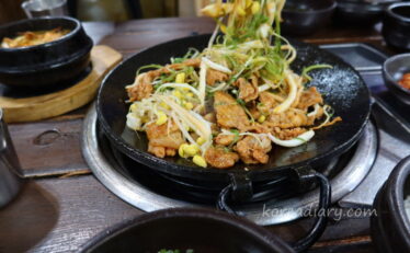 5日目の夜はホテルの近くにある「서서방숯불닭갈비(ソソバンスップルタッカルビ)」口コミがすごく良い店なので期待大。私達はすぐに座れましたが、次に来たお客さんは席が空くまで待機してました。観光客だけじゃなくて地元の方にも人気があるみたい。似顔...