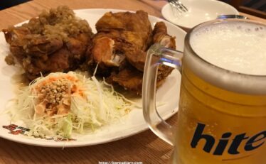 この間、何度か行ったことのあるオヌルトンタクの別支店に行きました。夜遅かったので、近所のおじさんたちがワイワイ飲んでてうるさかった・・・:(マヌル(にんにく)チキンと、普通のチキンを半々で。切ってから揚げる普通のフライドチキンと違って、トン...