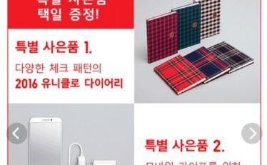 日本では今週開催されるユニクロ感謝祭ですが、韓国では先週ありました。7万ウォン以上の買い物で2016年の手帳かモバイルバッテリーをプレゼントとの事。ネットストアでヒートテックをまとめ買いして手帳を貰いました;-)